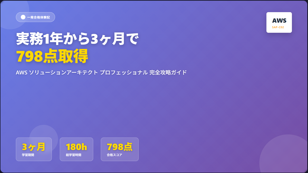 【SAP-C02】AWS SAP一発合格体験記|実務1年から3ヶ月で798点取得の全記録