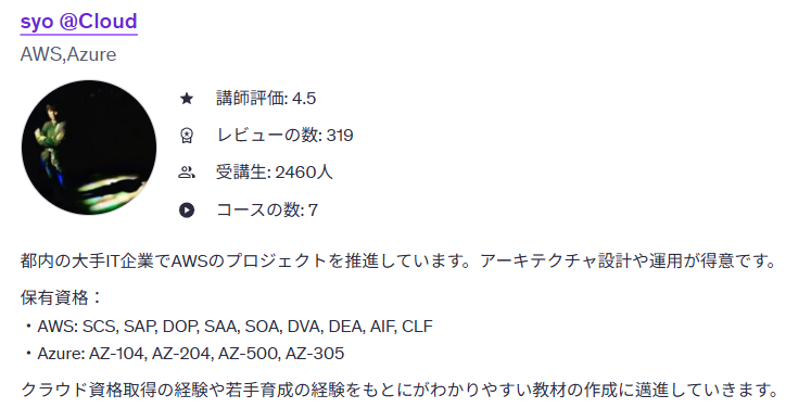 筆者のUdemy講師ページはこちら。