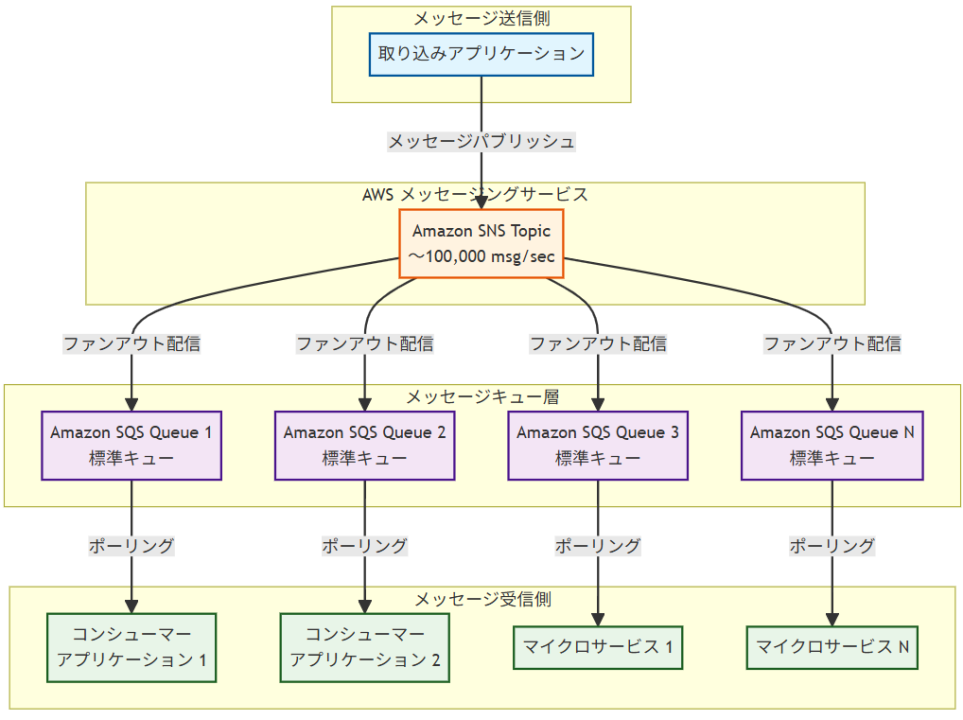 ある企業がメッセージを取り込むアプリケーションを運用しています。数十の他のアプリケーションとマイクロサービスがこれらのメッセージを迅速に消費する必要があります。メッセージ数は大幅に変動し、時には突然毎秒100,000メッセージまで増加します。