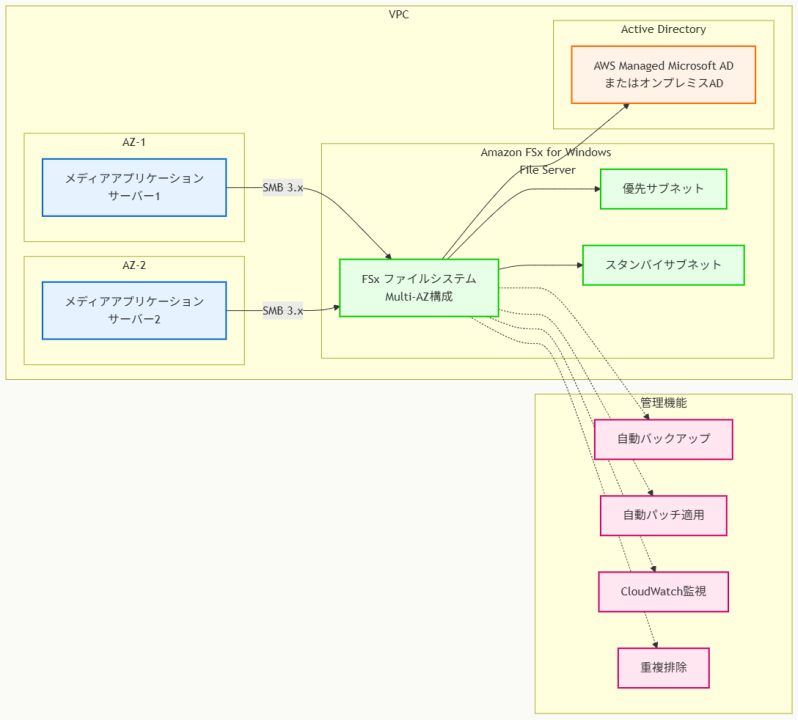 VPN接続を使用した仮想プライベートゲートウェイソリューションは、追加のVPNトンネル設定が必要で運用が複雑になります。また、VPNゲートウェイ自体が単一障害点となり、暗号化処理による帯域幅制限も発生します。